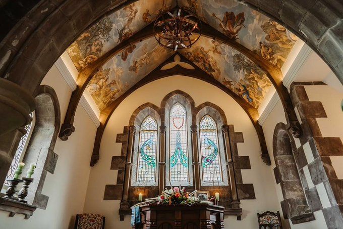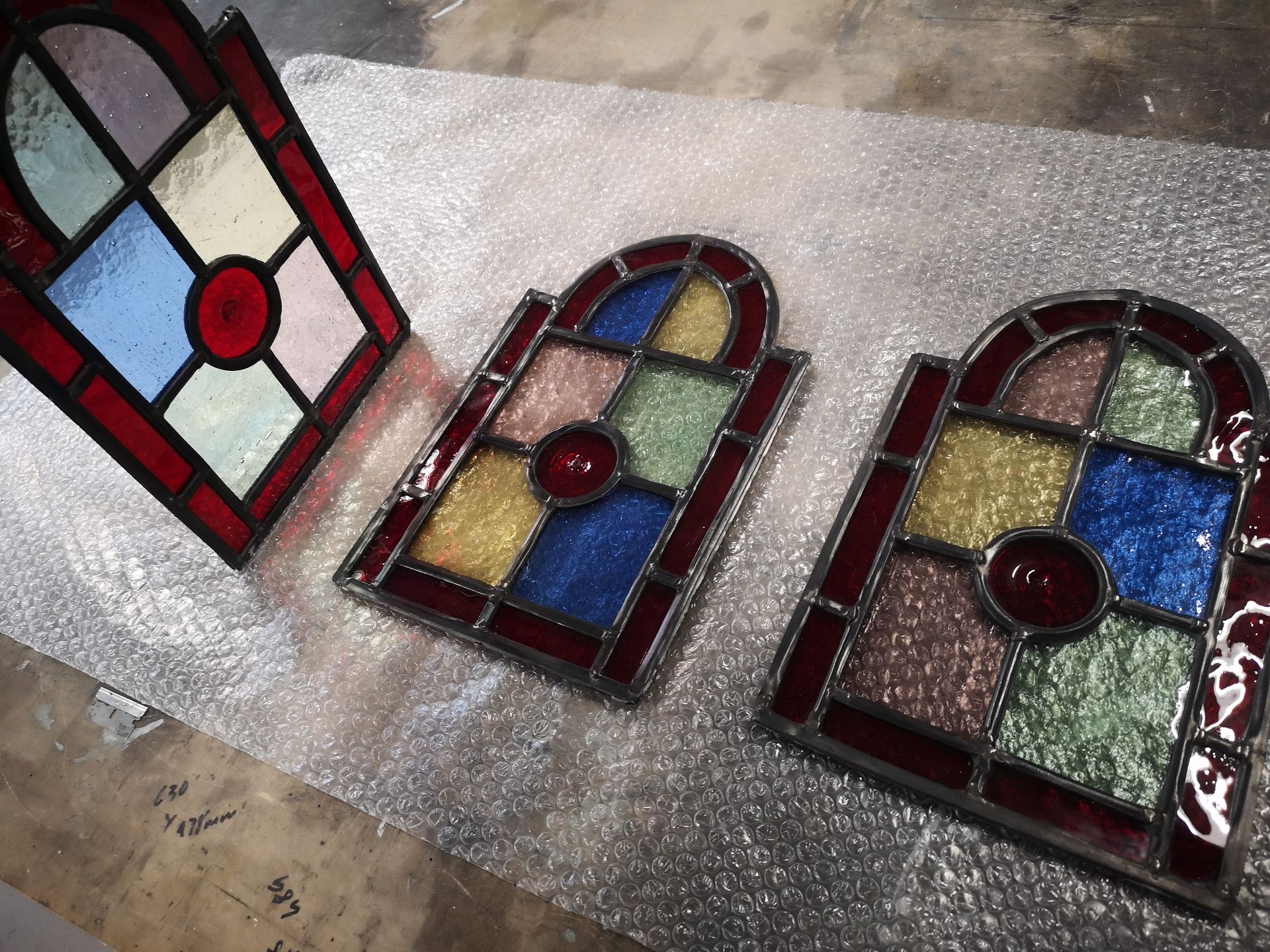 A set of new windows and reproductions for Culdees Castle Chapel, Perthshire. Scotland. Part of a large scale restoration of the castle, six new windows were made for the chapel. No records or photographs of the original windows existed so elements of the window reflect the remaining leaded windows. The making of the windows were featured on Channel 4 TV "Renovation Nation".