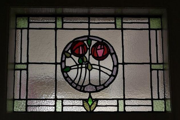 Glasgow Rose. A Charles Rennie Mackintosh design adapted for a new leaded transom light. Glasgow, Scotland.