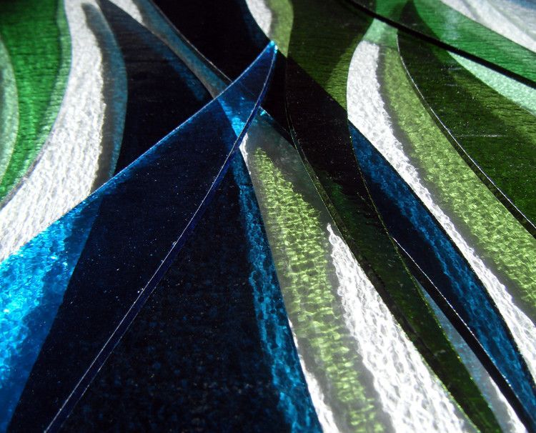 While not technically "stained glass" this fused glass screen was made for a sensory garden in Stonehouse, Scotland. For more of our fused glass commissions click here.